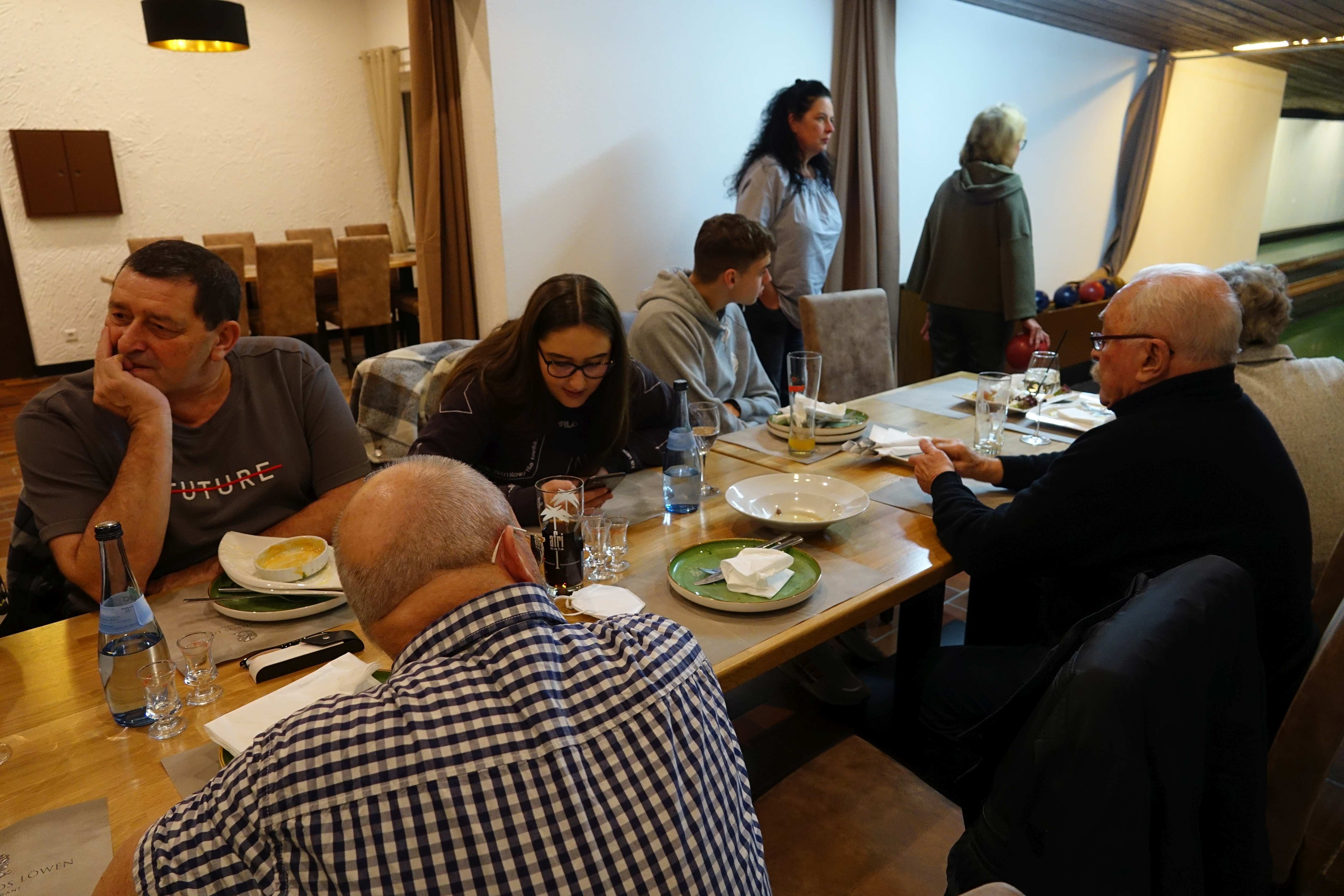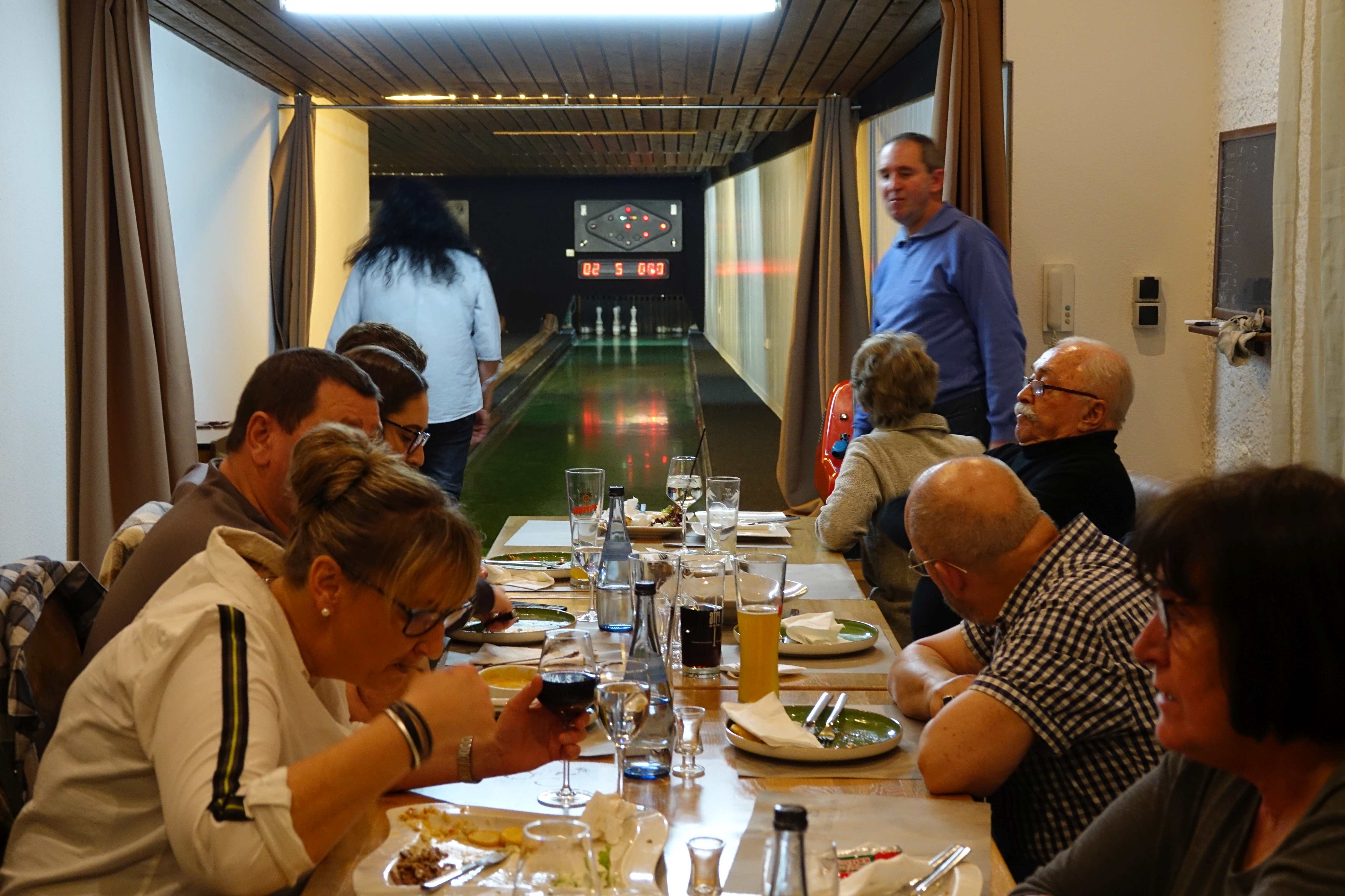 Das Essen wurde schnell serviert, wir machten eine kleine Kegelpause und genossen das wirklich leckere griechische Essen vom Löwen.