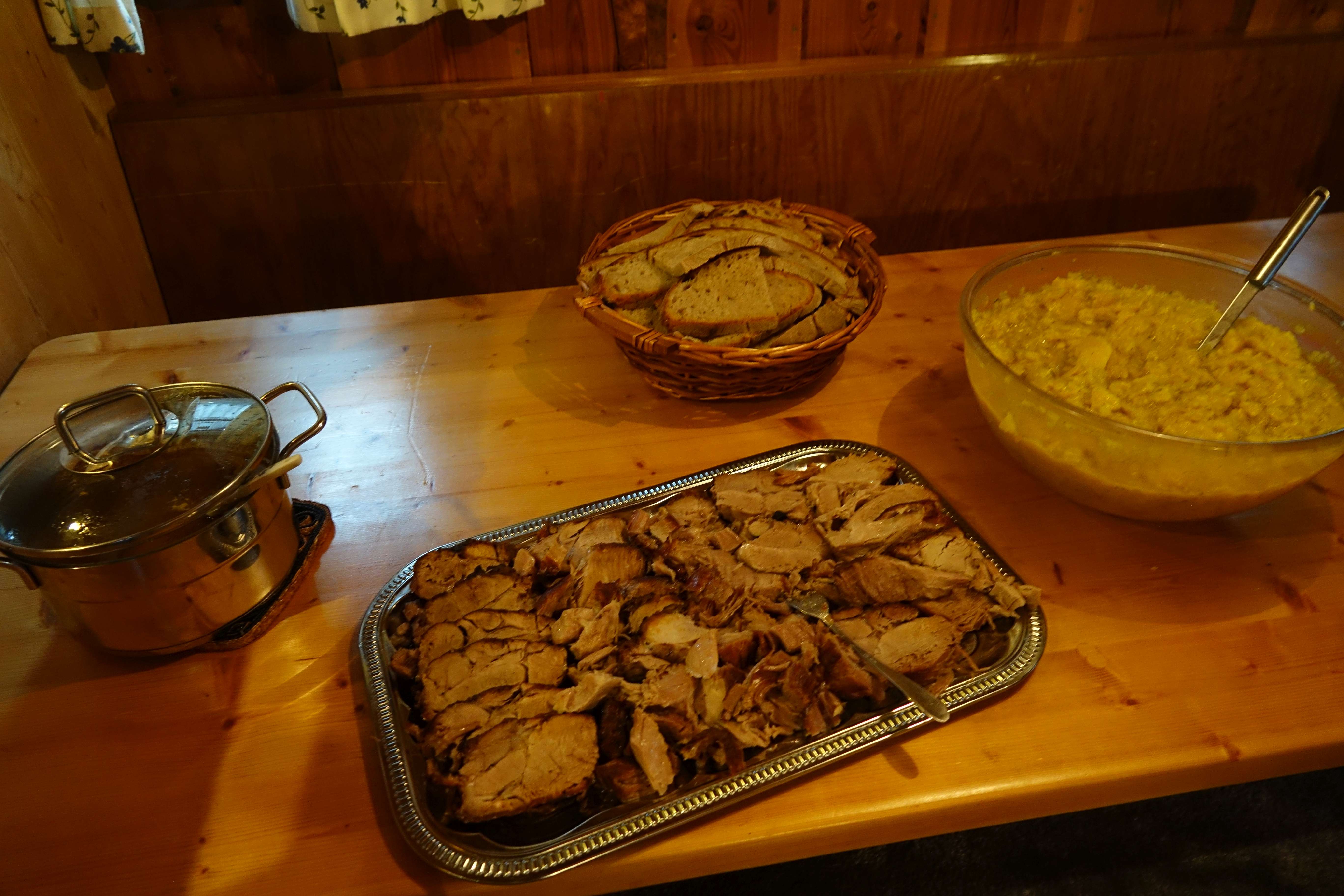 Nach einer Halbzeitpause und über 2 Stunden Fahrt, freuten wir uns auf das leckere Abendessen; Schweinebraten mit