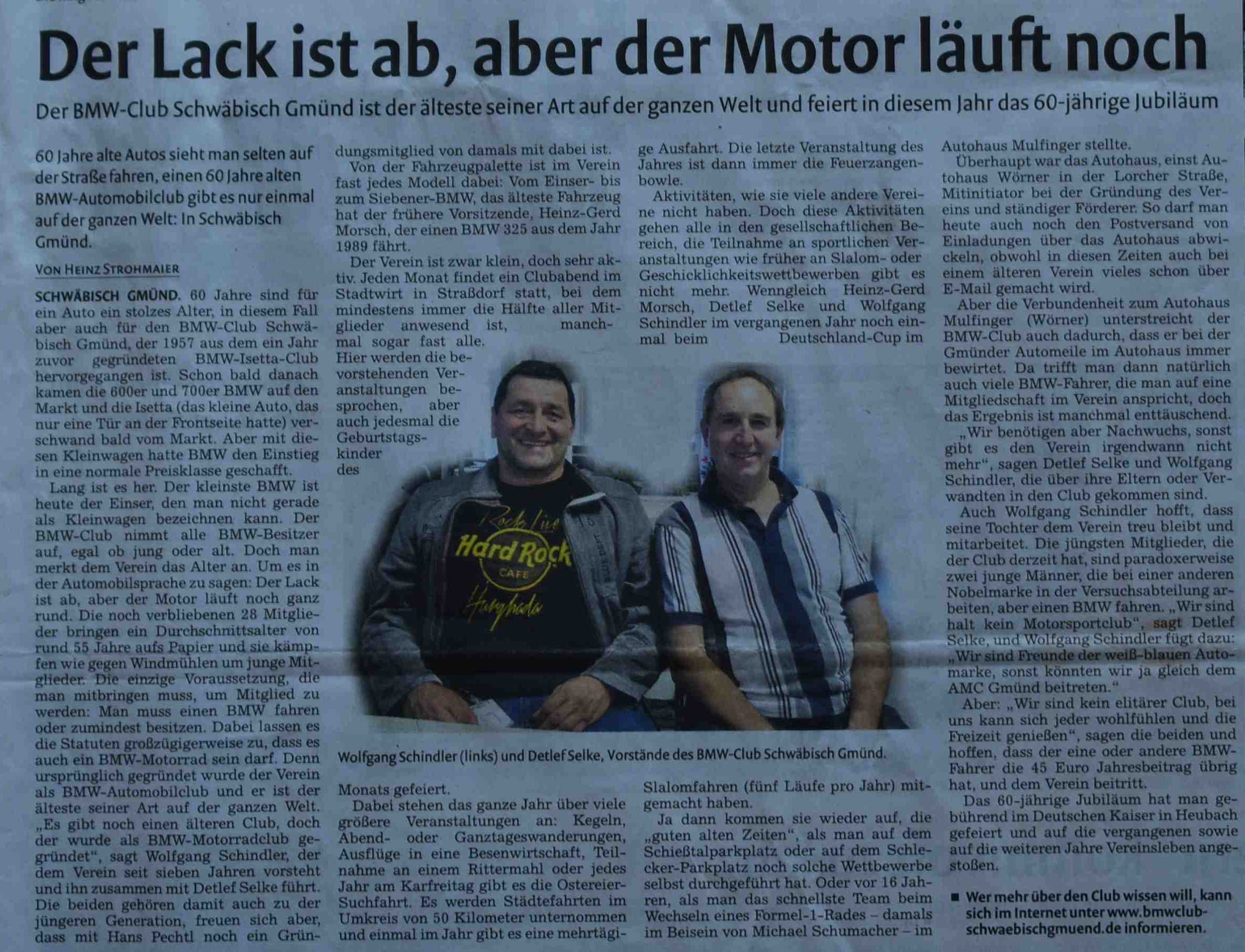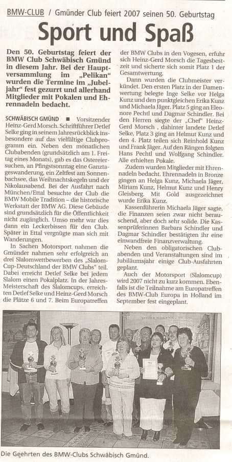 Gmünder Club feiert 2007 seinen 50. Geburtstag