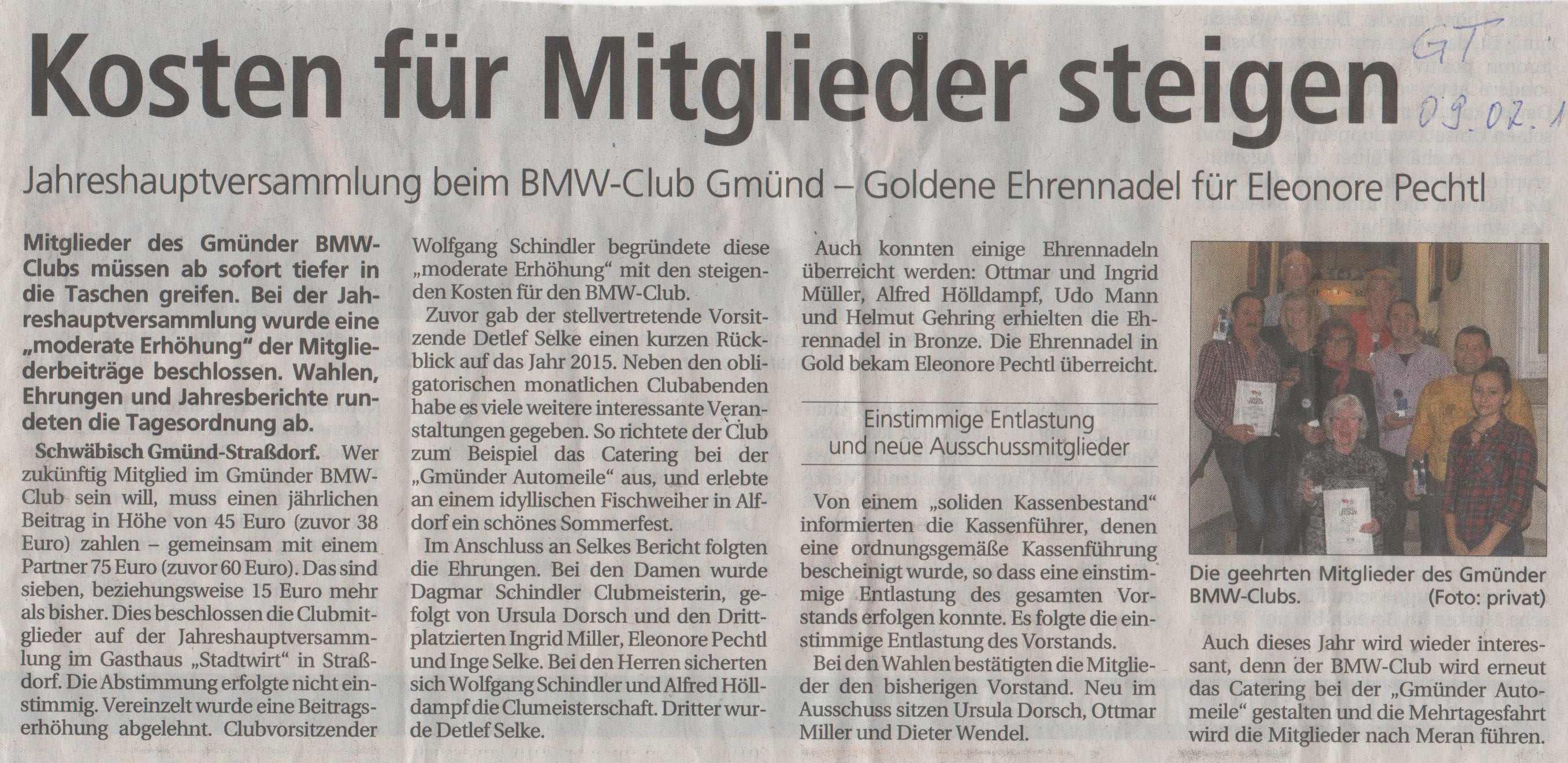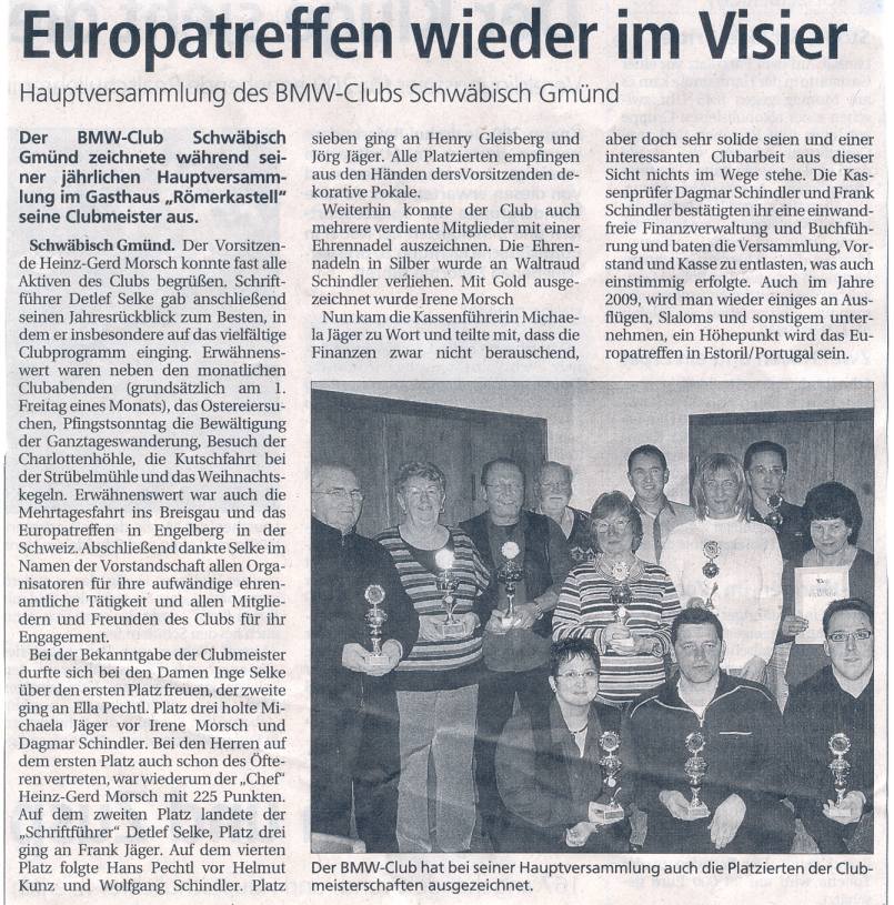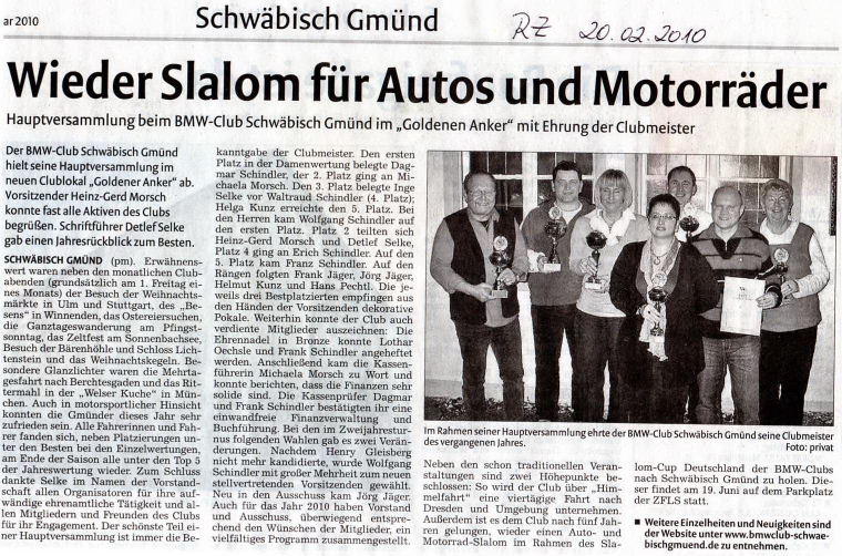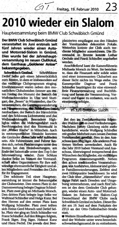 Jahreshauptverammlung, Bericht aus der Gmünder Tagespost - 19.02.2010