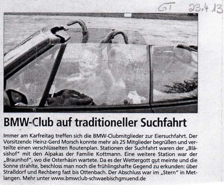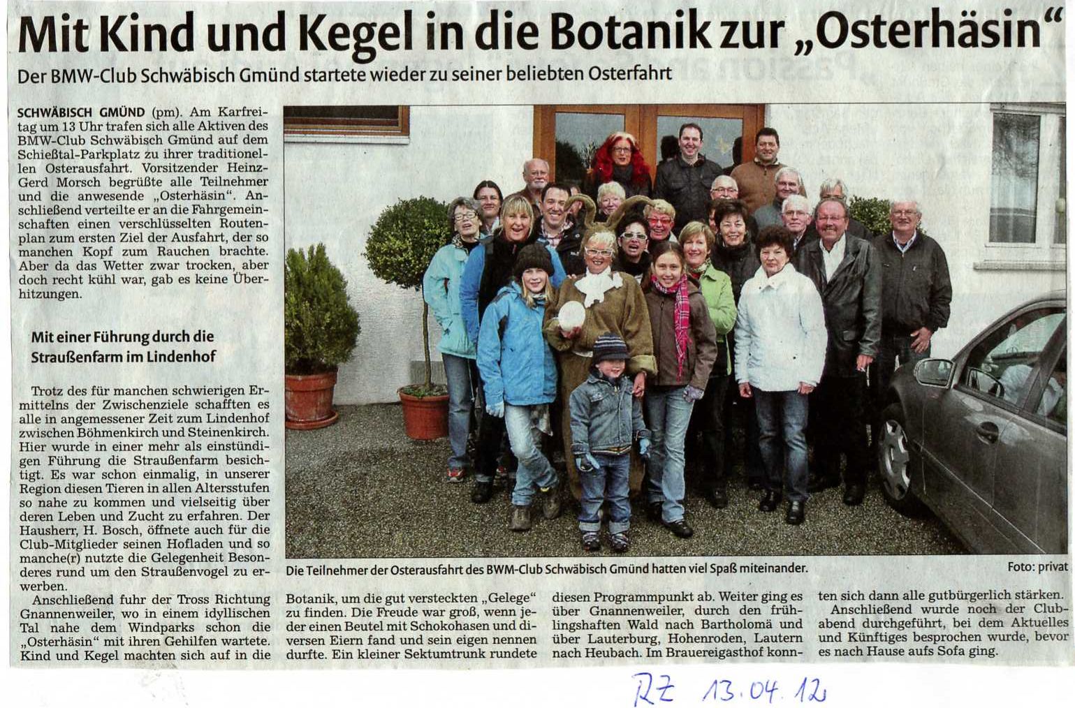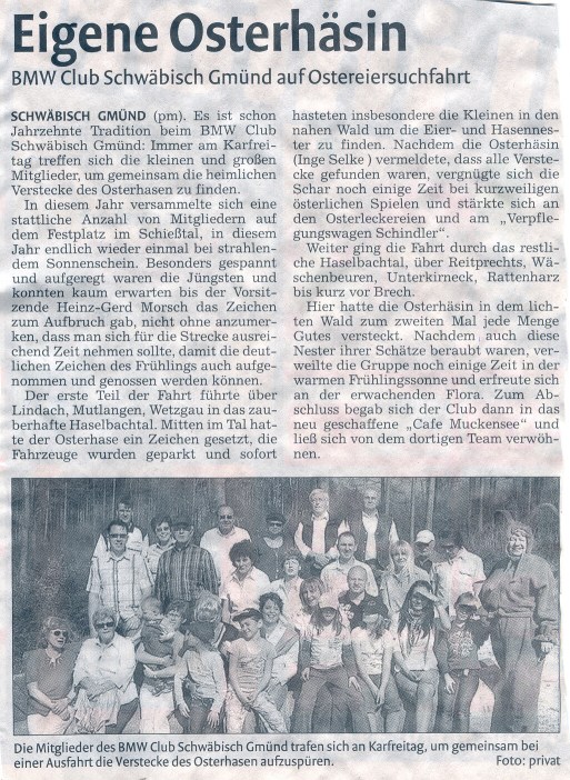 BMW-Club: Mit der eigenen Osterhäsin unterwegs / Remszeitung