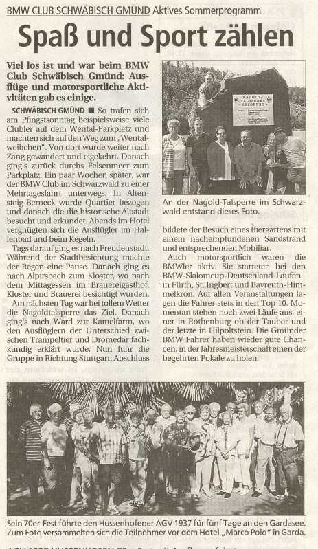 Ausschnitt aus der Gmünder Tagespost - Dienstag 09.Juni 09